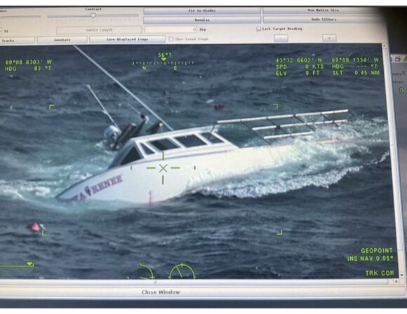 The Coast Guard’s northern New England command center received a mayday call at 7:03 a.m. from the crew of a sinking 40′ ridge liner vessel, Vesta Renee. The mariners reported that the vessel was taking on water and that they intended to abandon ship. They did not have a life raft or personal flotation devices, according to the Coast Guard.