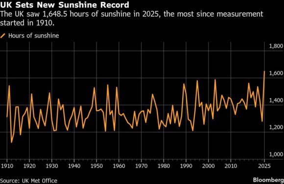 A combination of heat, sunshine and long-term shifts from climate change set the stage for an unprecedented weather year early across the UK, the Met Office said. By mid-May, the UK was recording its driest and sunniest spring in more than a century. Record-warm ocean waters boosted temperatures even more ahead of the summer, which saw several heat waves and surging wildfire risk as water companies enacted hosepipe bands to bolster reservoir levels as drought conditions settled across England.