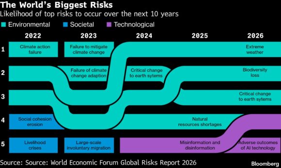 Last year’s Global Risks Report from the WEF dwelled most on war against the backdrop of the Ukraine conflict, while prior ones cited fake news and inflation as the most pressing worries.