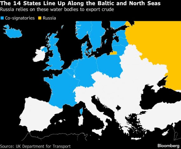 The 14 countries, including Sweden, France, Germany and the UK, line up along waterways that are the only outlets for major crude export hubs in western Russia. Tankers lifting Urals crude from Primorsk and Ust-Luga must sail through the Baltic Sea and the North Sea before entering the Atlantic Ocean.