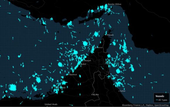 Some of the clusters appear to form distinctive shapes, including an apparent circle of vessels inland near Abu Dhabi, and one in the form of an inverted “Z” off Ruwais in the United Arab Emirates, the data showed on Monday. Other groups are in the Gulf of Oman, possibly indicating vessels waiting in groups for tensions to ease, or secure clear loading dates, before entering Hormuz.