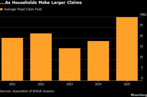 The dynamic feeds into growing financial inequality in Britain, with rising property values a key contributor to the country’s wealth gap. Home insurers in the UK are required to pay into Flood Re, much like banks must pay into the country’s deposit-insurance program. In exchange, insurers can opt to transfer risky policies over to the program.