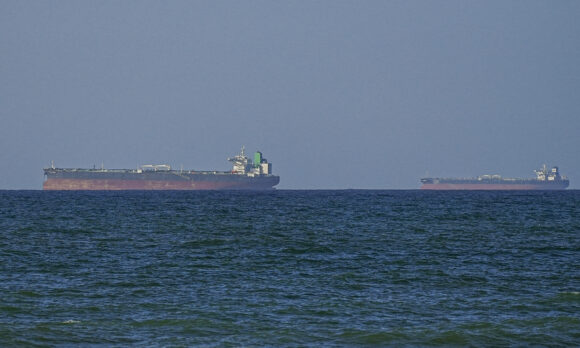 Photograph: Vessels passing through the Strait of Hormuz on April 8, 2026. Photo credit: Shadi J. H. Alassar/Anadolu/Getty Images