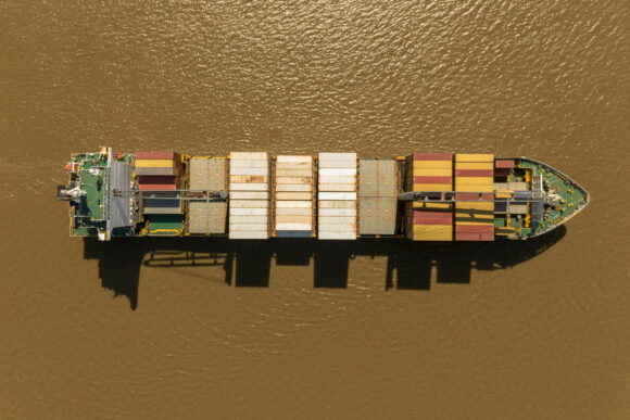 Photograph: A large cargo ship arrives from China carrying hundreds of containers with imported goods at the Port of Rosario in Rosario, Argentina, on Wednesday, Dec. 17, 2025. Photo credit: Sebastian Lopez Brach/Bloomberg