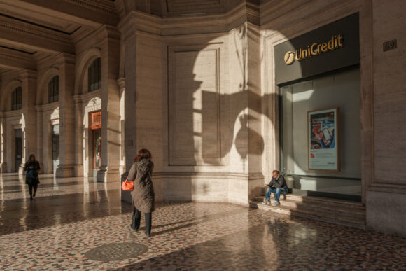 Photograph: A UniCredit SpA bank branch in Rome. Photo credit: Matteo Bastianelli/Bloomberg