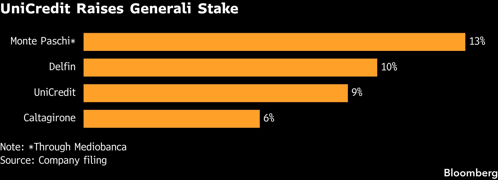 The bank is the insurer third-largest shareholder of Generali, according to a statement of the Trieste-based insurer detailing the shares deposited for the upcoming annual meeting. As recently as October, UniCredit Chief Executive Officer Andrea Orcel said the stake was under 5%, and indicated he planned to reduce it further.