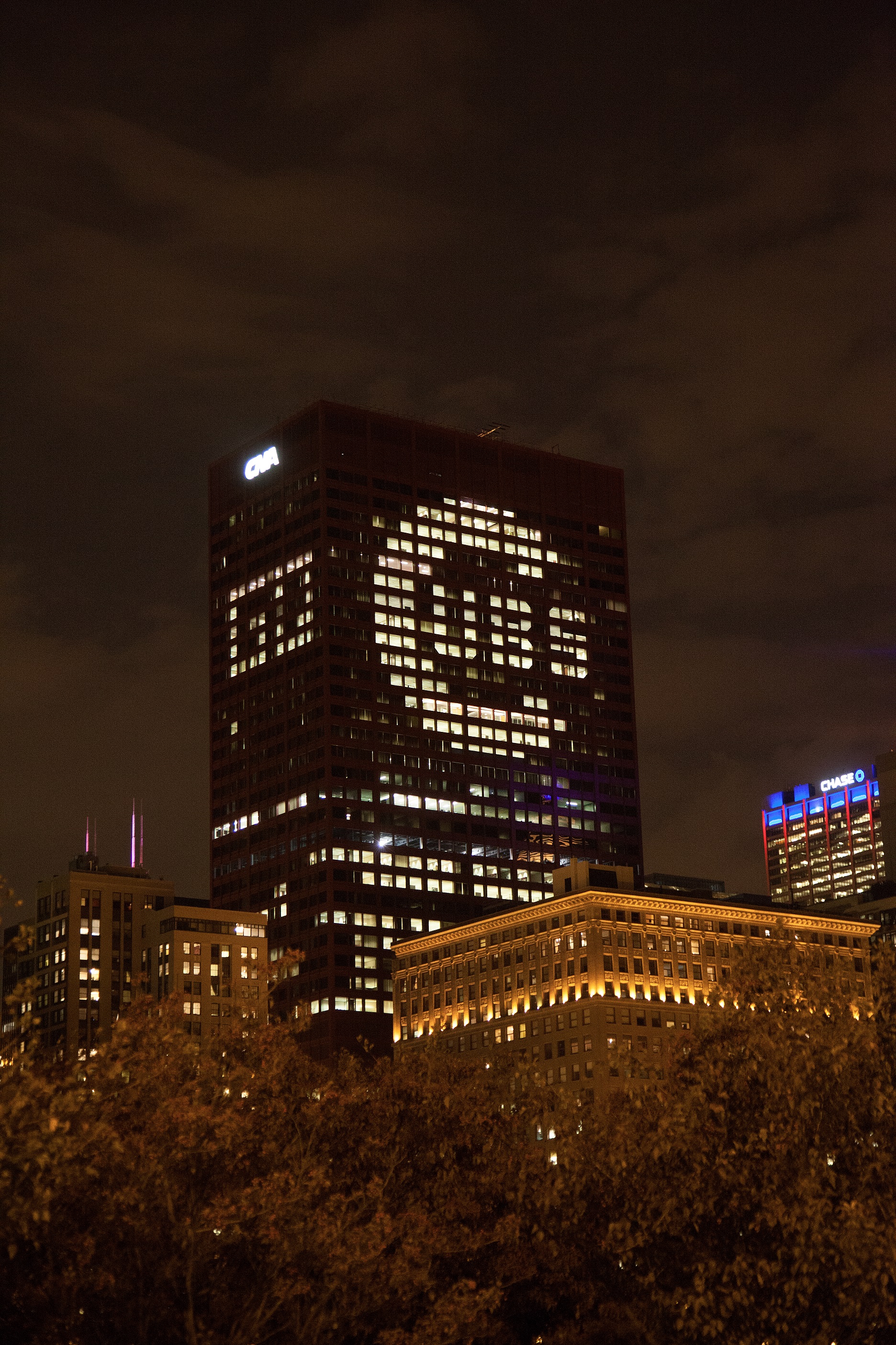 To celebrate the Cubs’ home games at Wrigley Field the National League Championship Series against the New York Mets, the company brightened the Chicago skyline with the Cubs logo on the east and west windows at CNA headquarters Oct. 20 — 22.