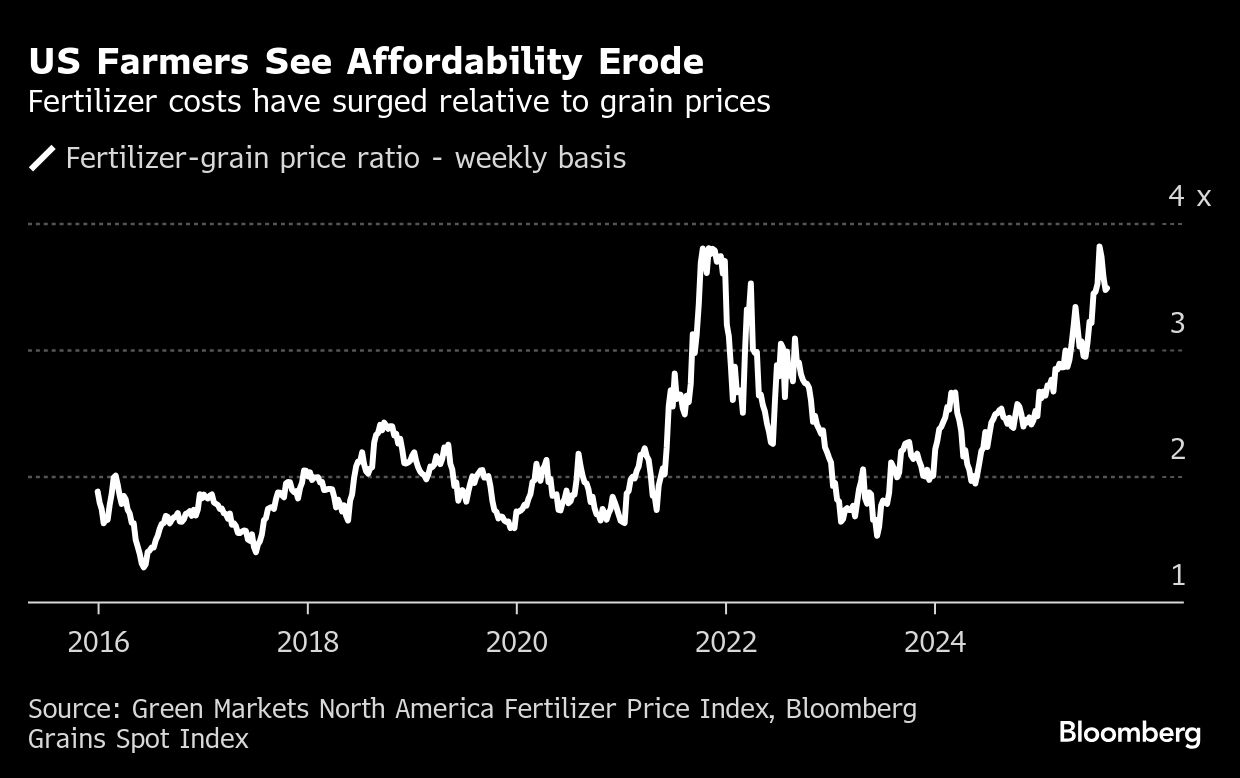 The US Department of Agriculture is forecasting a record corn crop for the season starting in September. While the soy harvest is expected to be smaller than last year after farmers planted less, yields are on track to hit a new high. That means farmers will face a mountain of supplies just as trade tensions with China dim prospects for American exports. Crop prices have been depressed as a result. Tariffs are also raising costs for key farm inputs like fertilizer, adding to the financial strain.