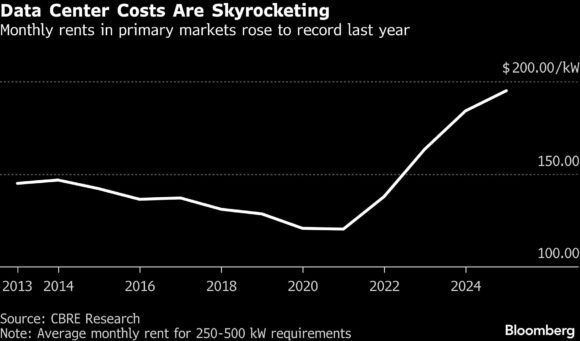 Back in the US, demand for data centers is so high that prices in primary markets including Chicago, Atlanta and Northern Virginia climbed to a record last year, according to CBRE. Leasing across top markets climbed to an all-time high in the last three months of the year, with Chicago inking deals for more than 300 megawatts, a record, according to a Green Street report.