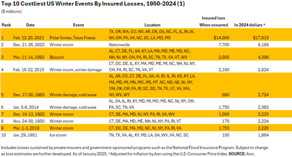 If KKC’s estimate is accurate, Winter Storm Fern will be the third costliest winter event to insurers, ahead of a blizzard in 1993.