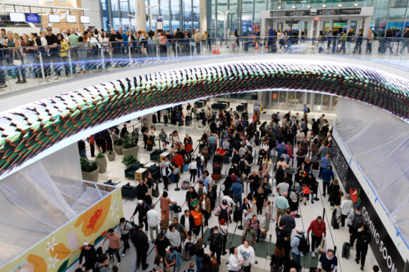 Affected airports included Atlanta, Houston and New York. Lines have snaked through terminals, baggage claims and even outside in some cases, as frustrated passengers griped about the waits and the potential of missed flights.