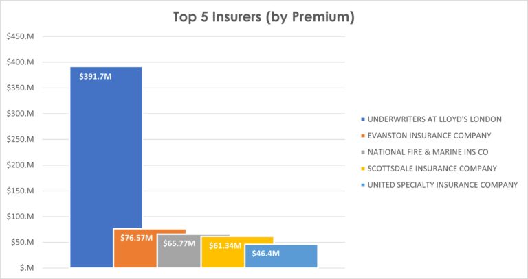 The top five insurers are responsible for nearly one-third (32%) of the premiums reported during Q1, with the top 5 agencies placing a little less than half (45%) of that premium. Cumulatively, the top 5 coverages account for roughly two-thirds (68%) of those same premiums.