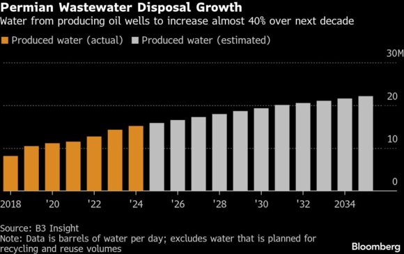 Oil and gas wells in the Permian, the largest US shale basin, generate 21 million barrels per day of water laden with salt, chemicals and heavy metals. Drillers have been disposing of most of that fluid by pumping it back underground, a practice that has triggered earthquakes and leaks.
