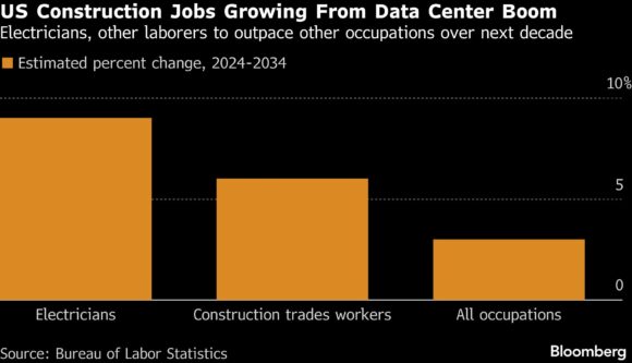 The effort to lure workers with stepped-up accommodations comes as employment in construction trades is expected to grow 6% from 2024 to 2034, double the projected growth for all jobs, according to the Bureau of Labor Statistics. Roles for electricians, a bottleneck for AI construction, are expected to expand 9% in that time.