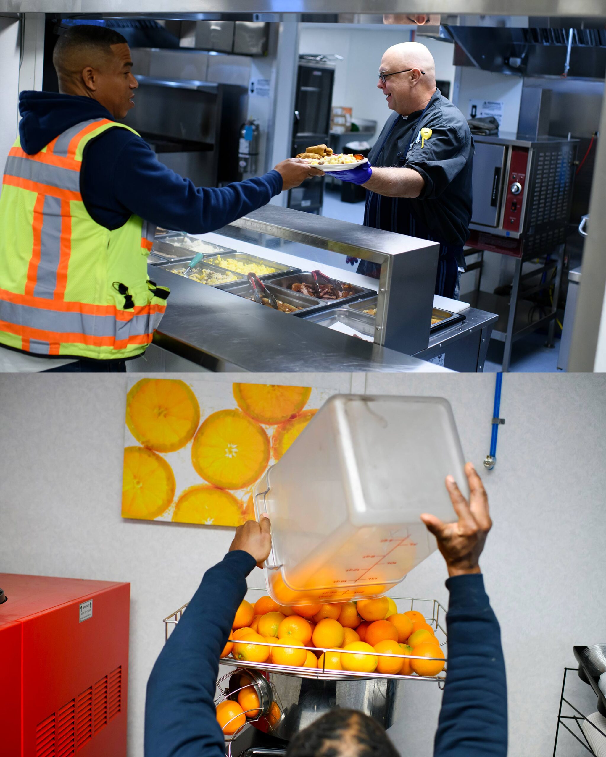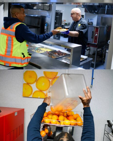 Target Hospitality cooks on a nine-week rotating menu, offering fresh-squeezed orange juice daily and grilled steaks on demand, though orders of rib eyes tend to cool off once the novelty subsides.