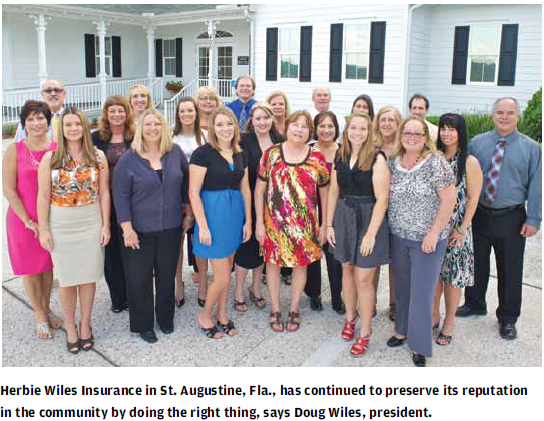The agency with its 28 employees serves St. Augustine and neighboring northern Florida communities including Jacksonville and Orlando. The agency writes about $28 million in premium per year — everything from the “little old lady with one automobile” to larger accounts around $200,000, says President Doug Wiles, who joined his father in the agency in 1979. The firm also has a few niche markets including condominiums, religious institutions and bed and breakfast establishments.