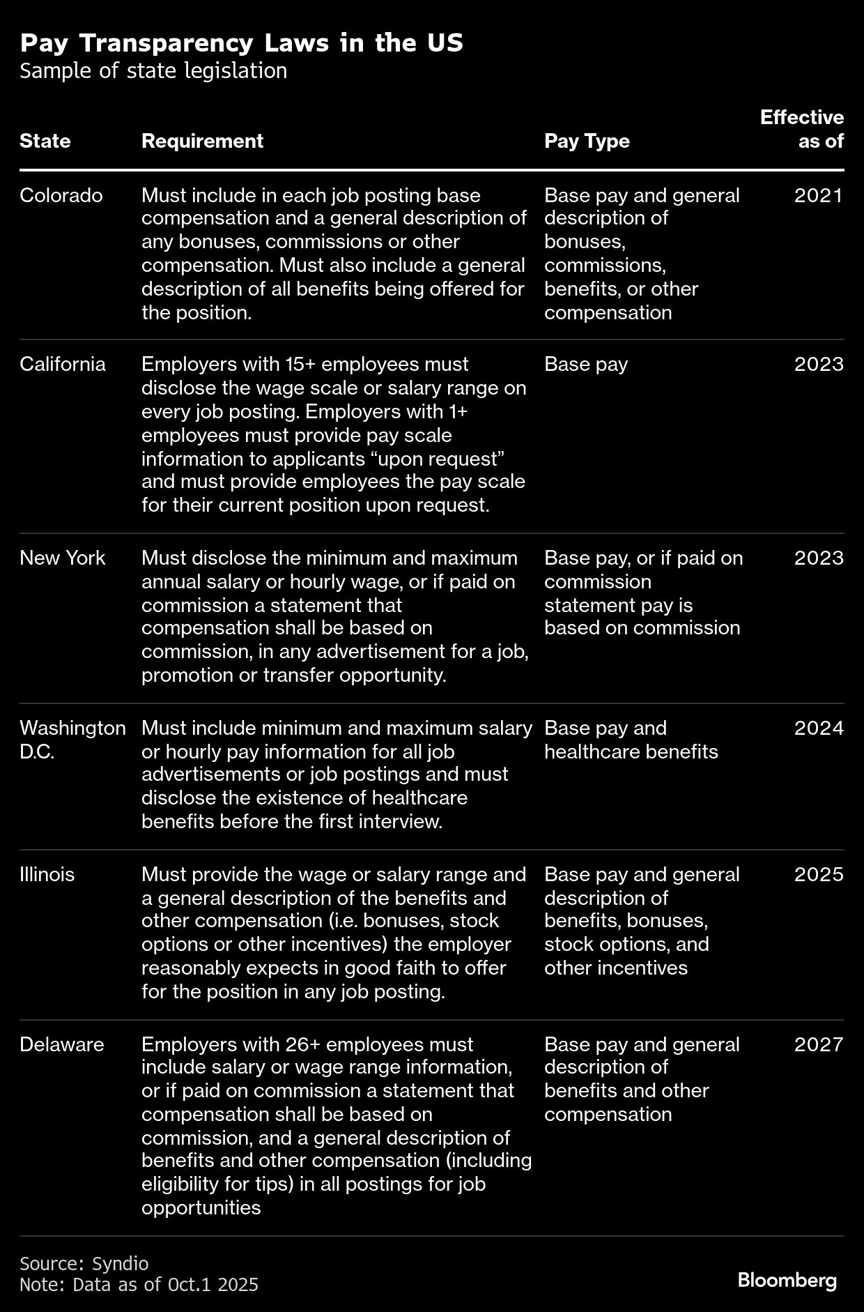 Disclosure rules took effect in five more states in 2025: Illinois, Minnesota, New Jersey, Vermont and Massachusetts. This year, EU countries will enact rules mandating the inclusion of pay ranges in advertised positions, and in 2027, companies in the EU must report their mean and median gender pay gaps.